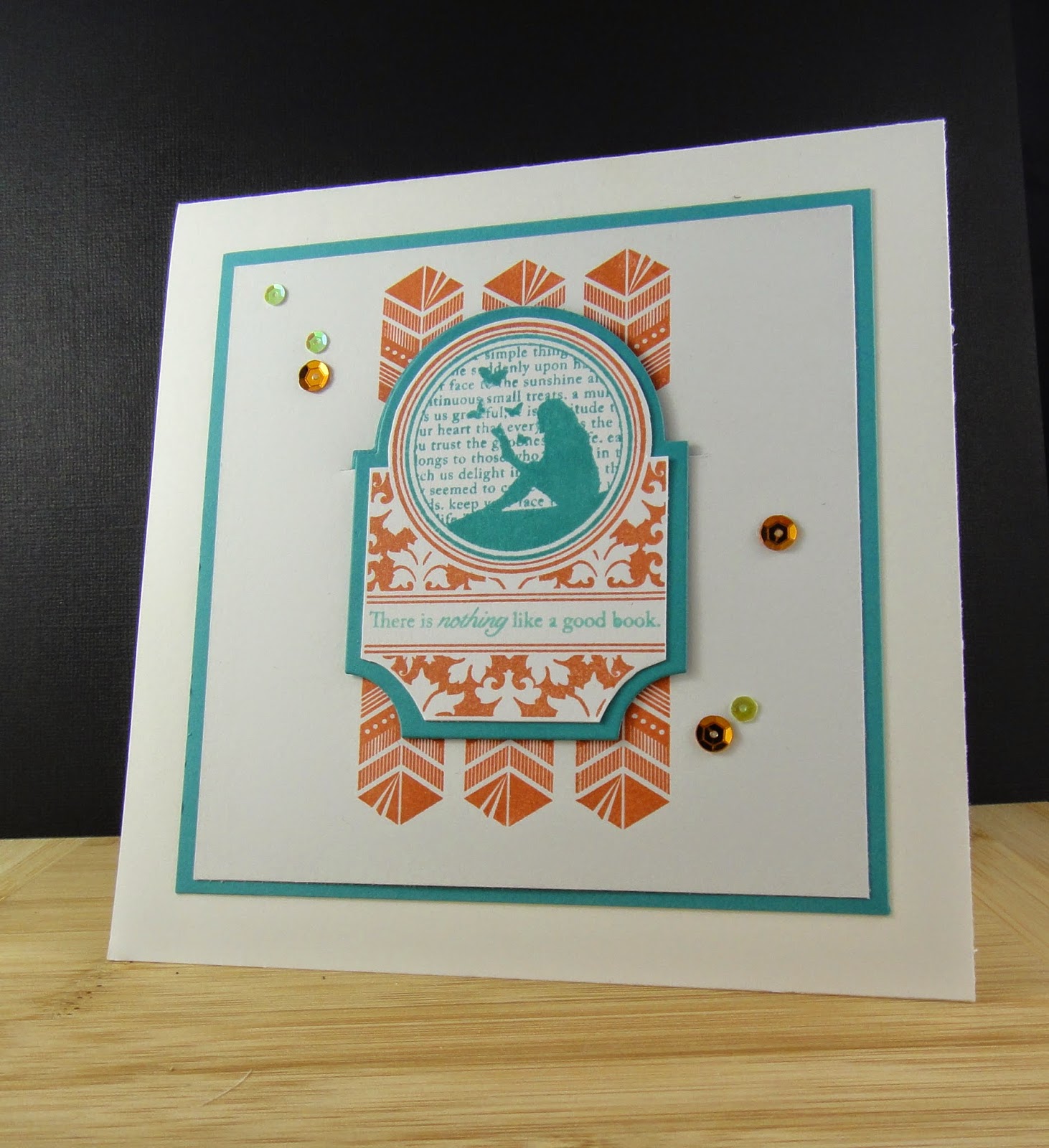 Just one more I thought I would tack on the end.  My daughter's teacher has had a term off school and his replacement will be finishing up on Wednesday.  She asked me for a card and present to give her.  The colours she chose were aqua and mango .... hmmm.